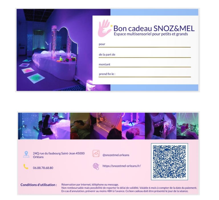 Une fois le code cadeau reçu par mail, merci de me transmettre par mail (snozetmel.orleans@gmail.com) :