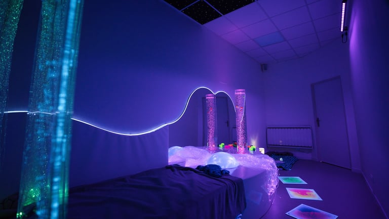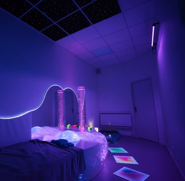 Privatiser la salle snoezelen pour profiter en famille ou seul, d'un espace doux, sensoriel et sécurisant, pensé pour éveiller les sens en douceur.